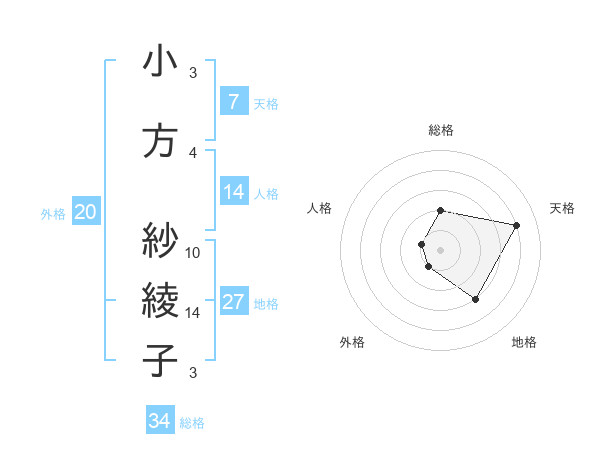 小方 紗綾子さんを姓名の画数から五運を鑑定