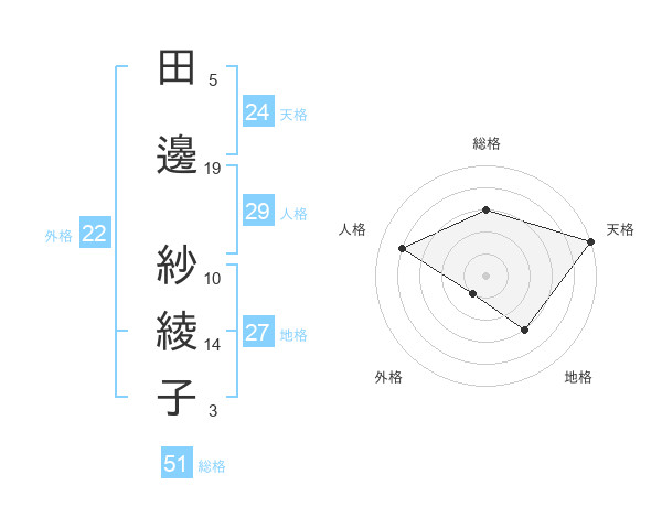 田邊 紗綾子さんの総格は51画の3点!