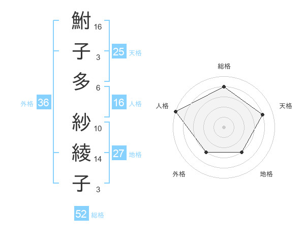 鮒子多 紗綾子さんを姓名の画数から五運を鑑定