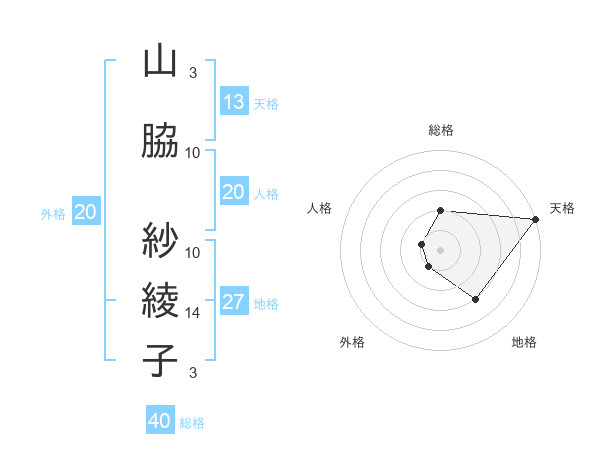 山脇 紗綾子さんを姓名の画数から五運を鑑定