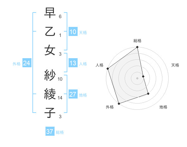 早乙女 紗綾子さんを姓名の画数から五運を鑑定