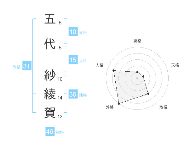 五代 紗綾賀さんの天格は10画の1点!