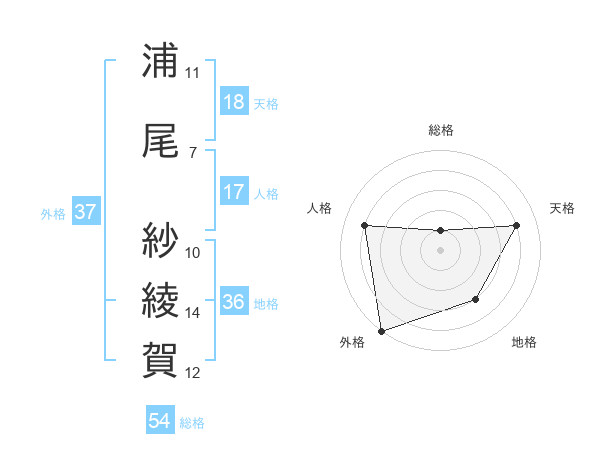 浦尾 紗綾賀さんを姓名の画数から五運を鑑定