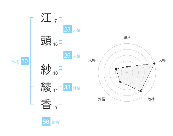 江頭 紗綾香さんの天格は23画の5点!