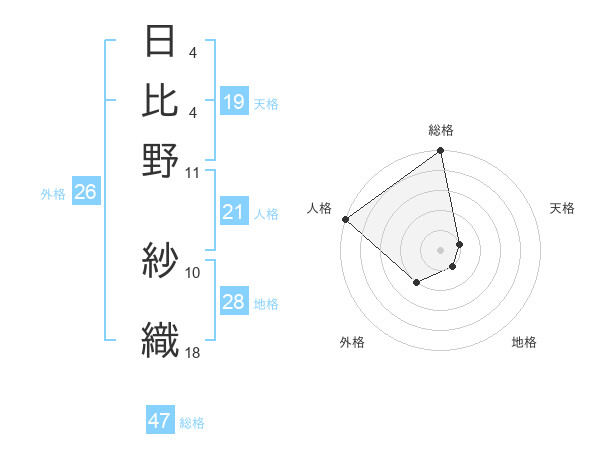 日比野 紗織さんを姓名の画数から五運を鑑定