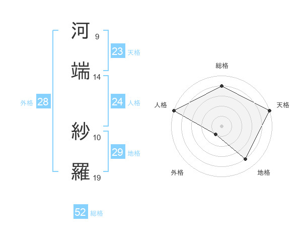 河端 紗羅さんを姓名の画数から五運を鑑定