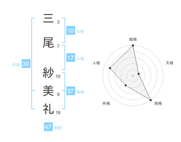 三尾 紗美礼さんを姓名の画数から五運を鑑定