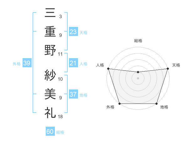 三重野 紗美礼さんを姓名の画数から五運を鑑定