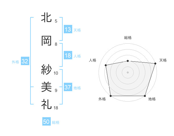 北岡 紗美礼さんの天格は13画の5点!
