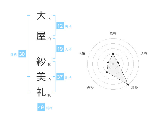大屋 紗美礼さんを姓名の画数から五運を鑑定