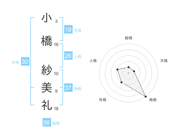 小橋 紗美礼さんを姓名の画数から五運を鑑定
