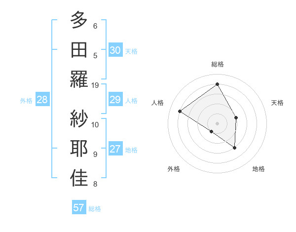 多田羅 紗耶佳さんを姓名の画数から五運を鑑定