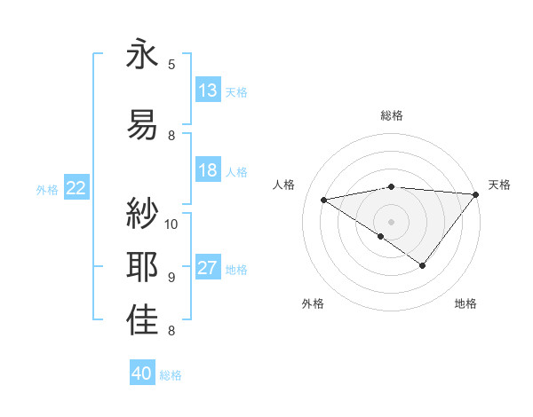 永易 紗耶佳さんの天格は13画の5点!