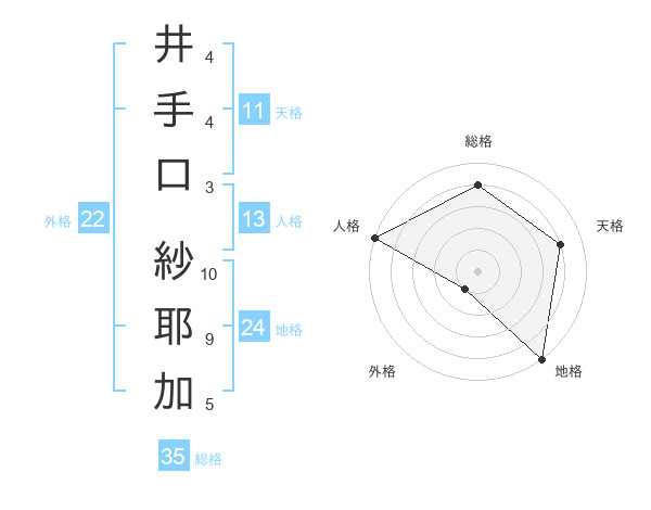 井手口 紗耶加さんの総格は35画の4点!