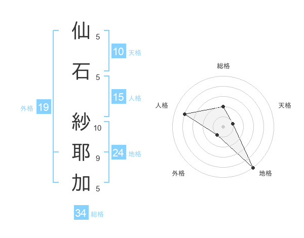 仙石 紗耶加さんを姓名の画数から五運を鑑定