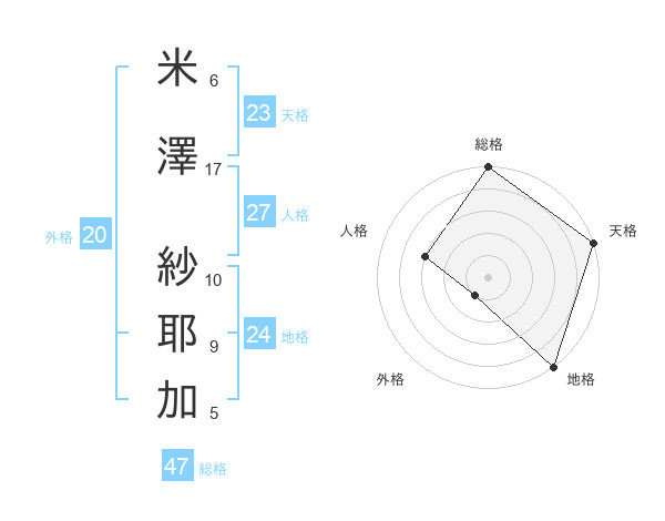 米澤 紗耶加さんを姓名の画数から五運を鑑定