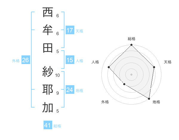 西牟田 紗耶加さんを姓名の画数から五運を鑑定
