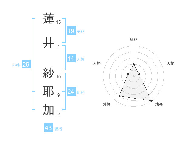 蓮井 紗耶加さんの総格は43画の2点!
