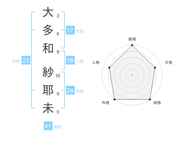 大多和 紗耶未さんを姓名の画数から五運を鑑定