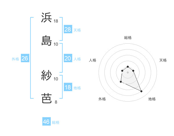 浜島 紗芭さんを姓名の画数から五運を鑑定