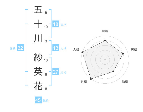 五十川 紗英花さんを姓名の画数から五運を鑑定