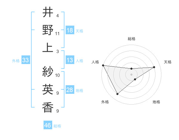 井野上 紗英香さんを姓名の画数から五運を鑑定