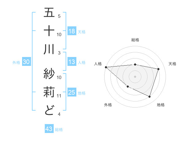 五十川 紗莉どさんを姓名の画数から五運を鑑定
