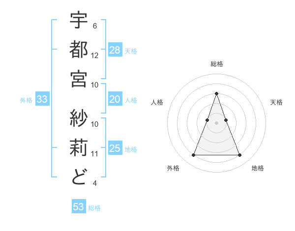 宇都宮 紗莉どさんの総格は53画の3点!