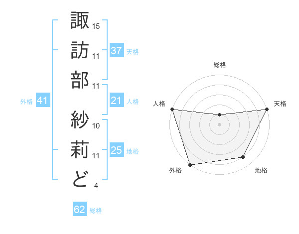 諏訪部 紗莉どさんを姓名の画数から五運を鑑定