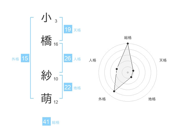 小橋 紗萌さんを姓名の画数から五運を鑑定