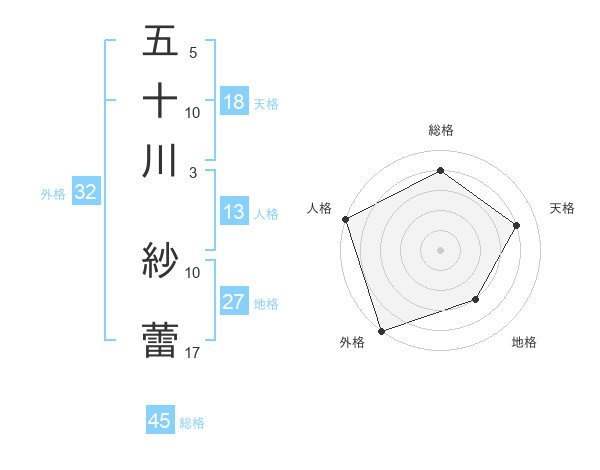 五十川 紗蕾さんを姓名の画数から五運を鑑定
