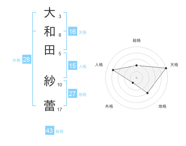 大和田 紗蕾さんを姓名の画数から五運を鑑定