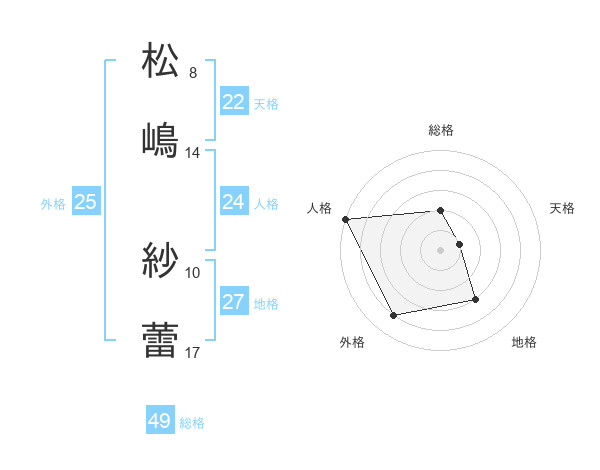 松嶋 紗蕾さんを姓名の画数から五運を鑑定