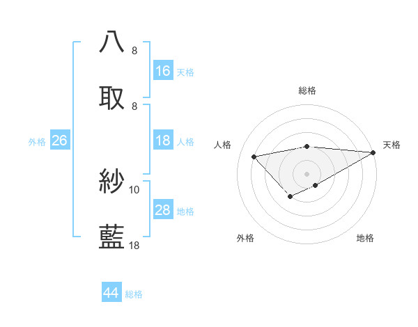 八取 紗藍さんを姓名の画数から五運を鑑定