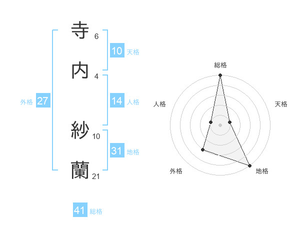 寺内 紗蘭さんの総格は41画の5点!