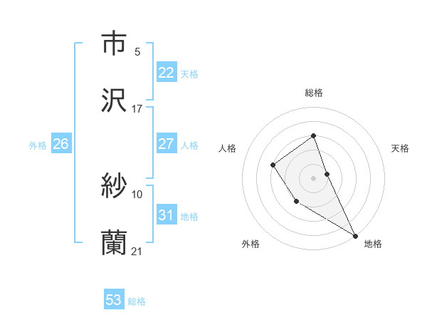 市沢 紗蘭さんの総格は53画の3点!