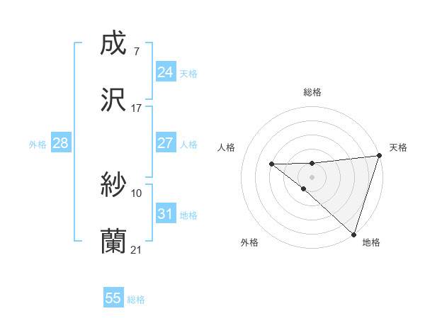 成沢 紗蘭さんの天格は24画の5点!