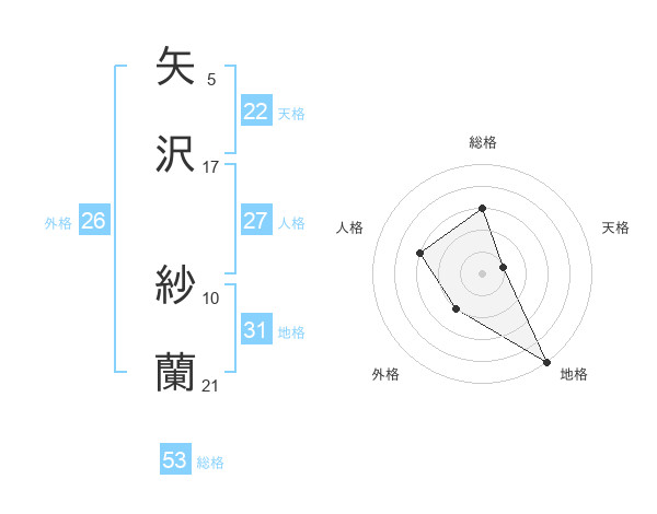 矢沢 紗蘭さんの総格は53画の3点!