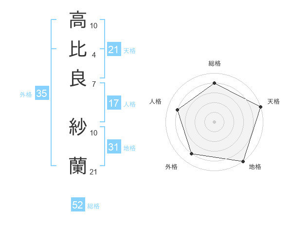 高比良 紗蘭さんを姓名の画数から五運を鑑定