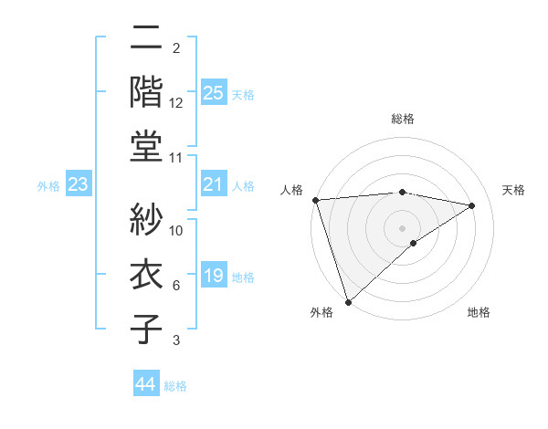 二階堂 紗衣子さんを姓名の画数から五運を鑑定