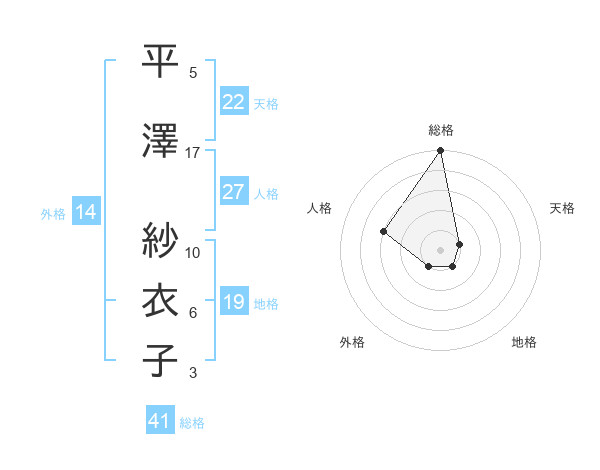 平澤 紗衣子さんを姓名の画数から五運を鑑定