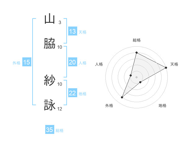 山脇 紗詠さんを姓名の画数から五運を鑑定