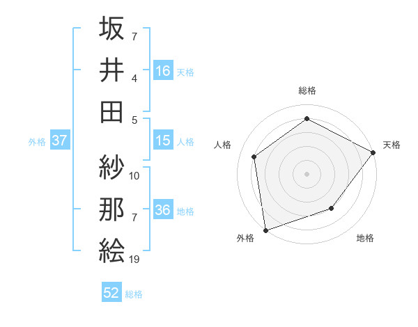 坂井田 紗那絵さんを姓名の画数から五運を鑑定