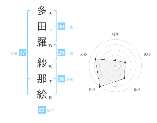 多田羅 紗那絵さんを姓名の画数から五運を鑑定