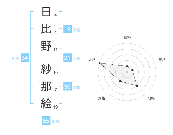 日比野 紗那絵さんの天格は19画の1点!
