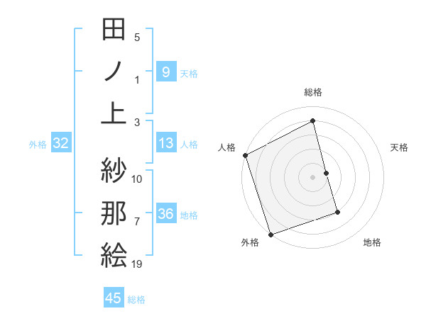 田ノ上 紗那絵さんの総格は45画の4点!