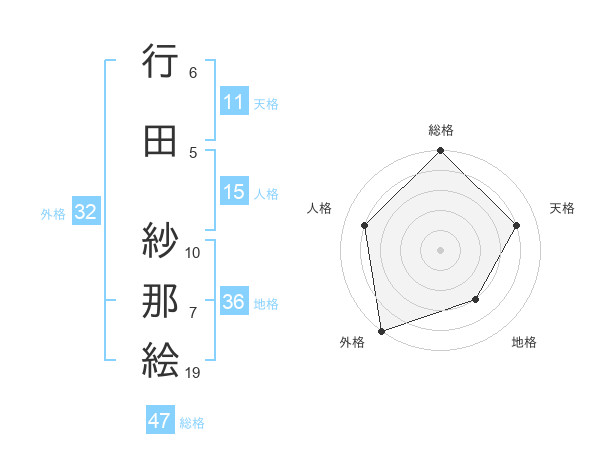 行田 紗那絵さんの総格は47画の5点!