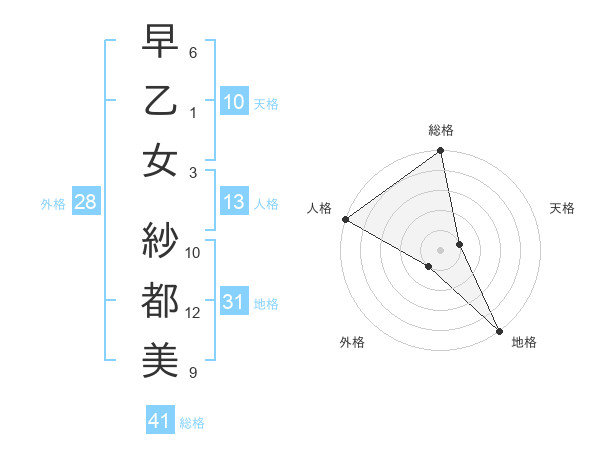 早乙女 紗都美さんを姓名の画数から五運を鑑定