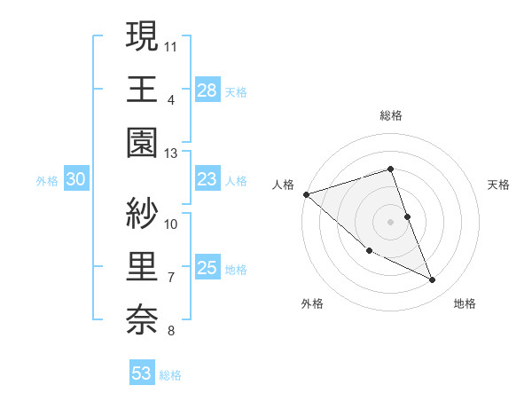 現王園 紗里奈さんを姓名の画数から五運を鑑定