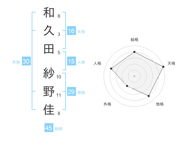 和久田 紗野佳さんの総格は45画の4点!